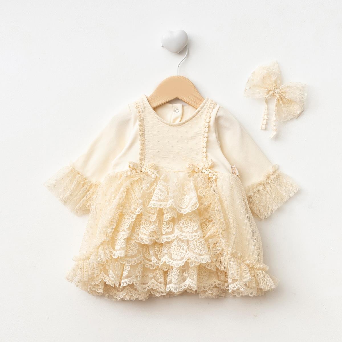 KIZ BEBEK 0-9 AY BANDANALI TÜLLÜ ELBİSE - AÇIK SARI (URU0032-AÇIKSARI-3)