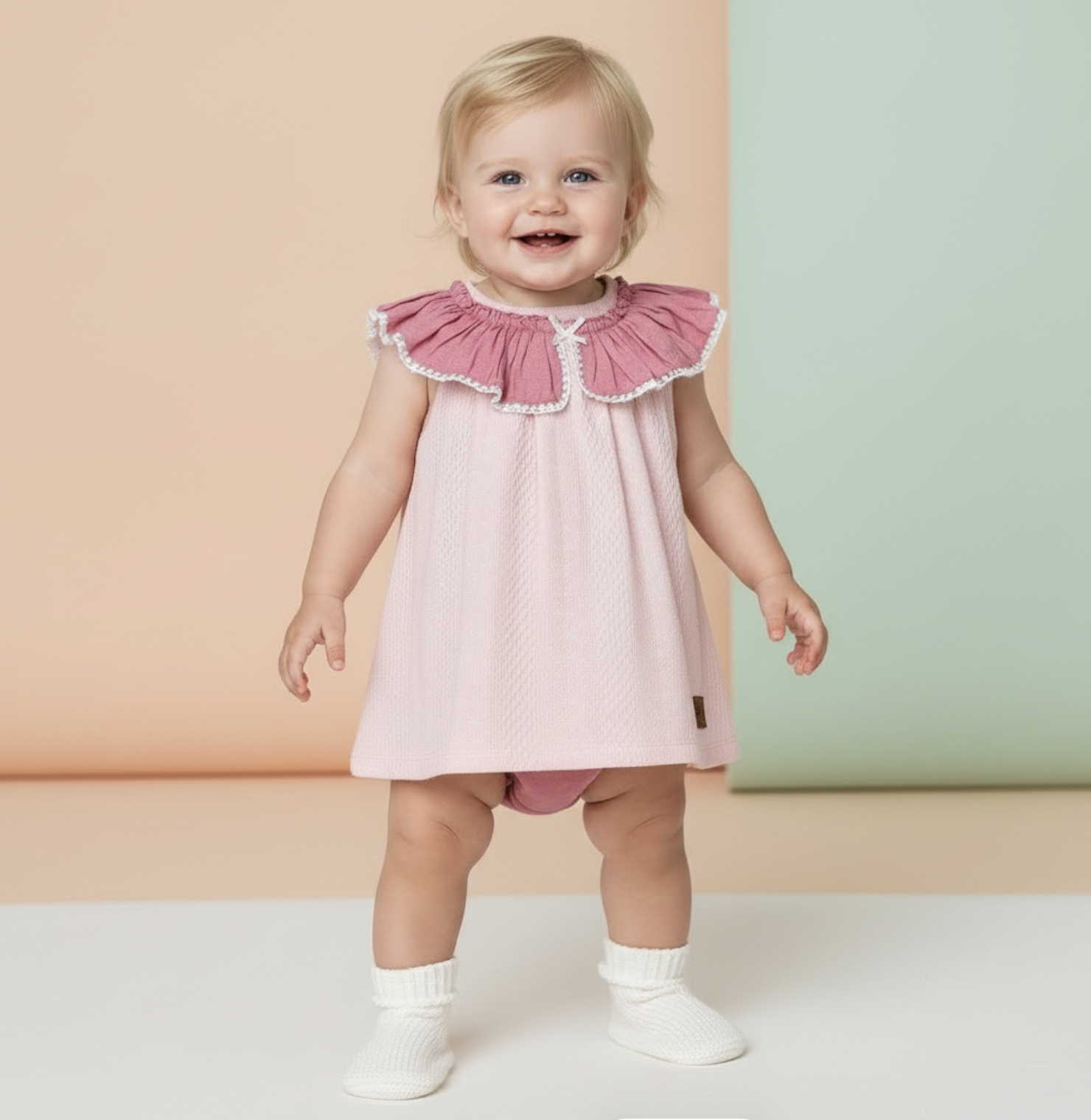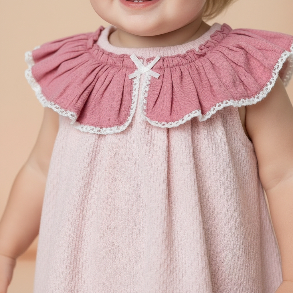 3 ila 18 ay arası kız bebekler için özel olarak tasarlanmış zıbın elbise; şortlu ve kolsuzdur. İki farklı renk seçeneği ile sunulan bu model, bebeğinizin tarzına uygun alternatifler sunar. 2'lidir.