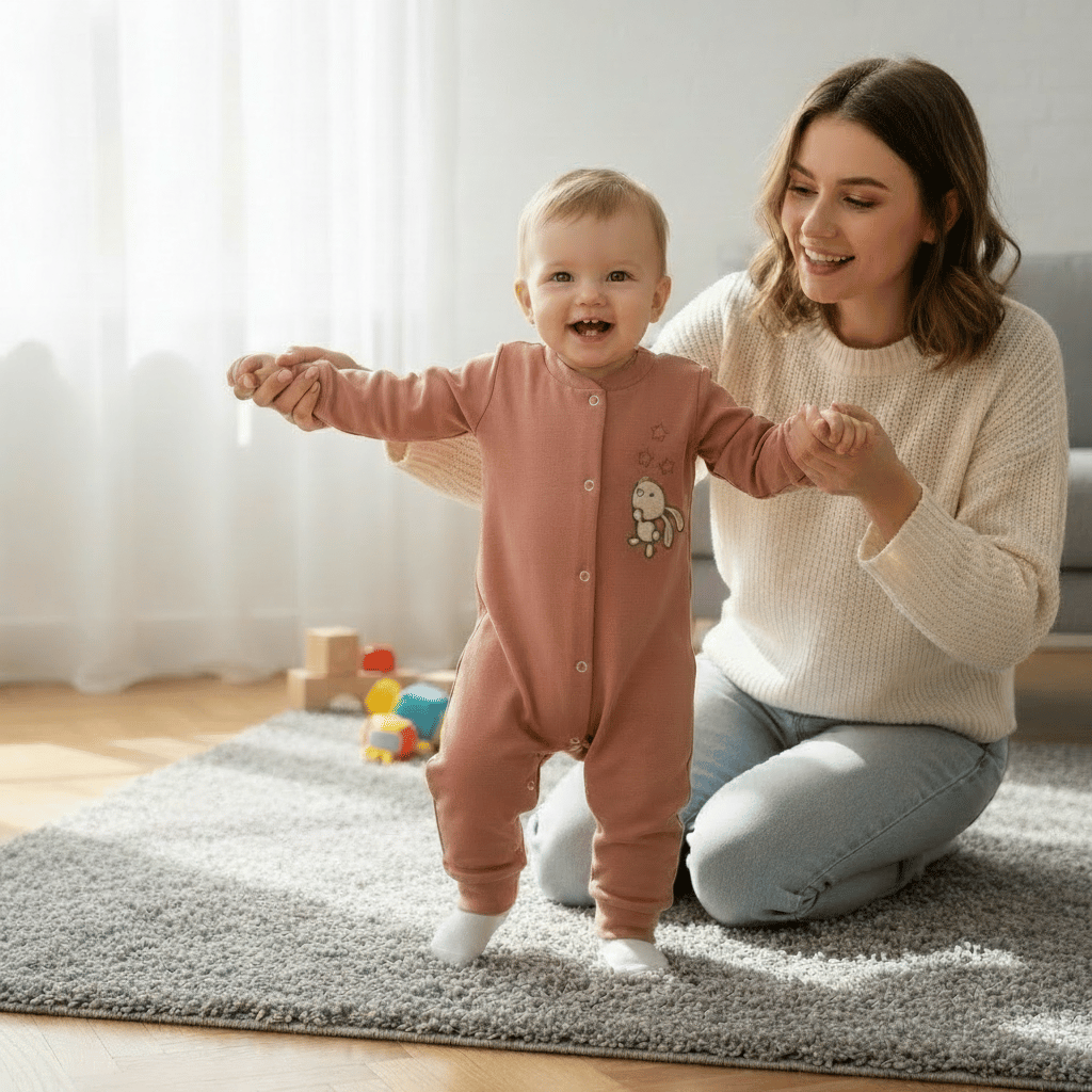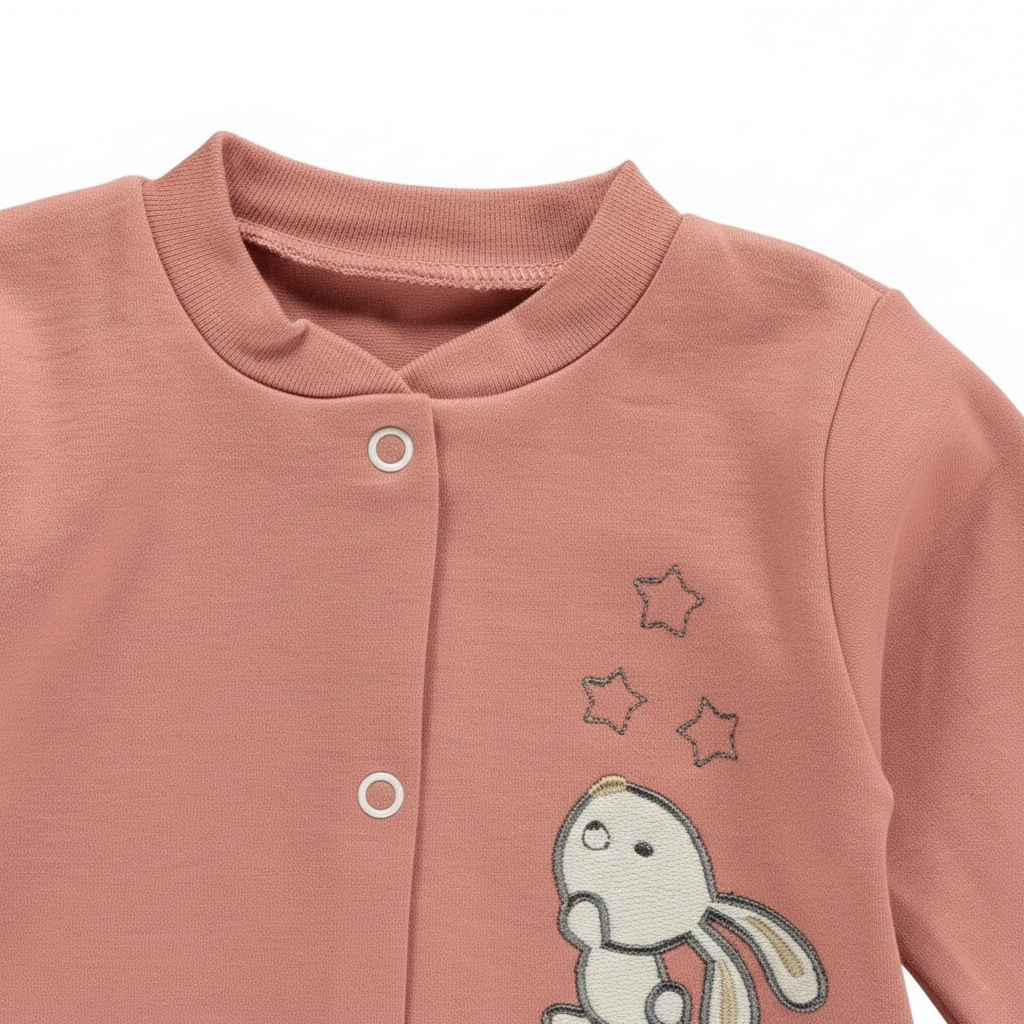 3 ila 9 ay arası bebekler için özel olarak tasarlanmış tulum; uzun kollu ve önden çıtçıtlıdır.; Dört farklı renk seçeneği ile sunulan bu model, bebeğinizin tarzına uygun alternatifler sunar.; Ürün, bebeğinizin hassas cildini korumak amacıyla sağlığa zararsız kumaş, boya, iplik ve aksesuarlar kullanılarak üretilmiştir.; Uzun ömürlü kullanım için yıkama talimatlarına dikkatle uymanız tavsiye edilir.