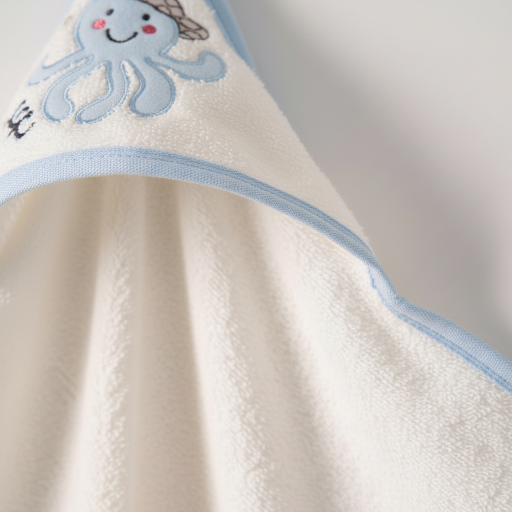 Bebekler için özel olarak tasarlanmış bu havlu, ahtapot desenli ve kapüşonludur. Yedi farklı renk seçeneği ile sunulan bu model, bebeğinizin tarzına uygun alternatifler sunar.