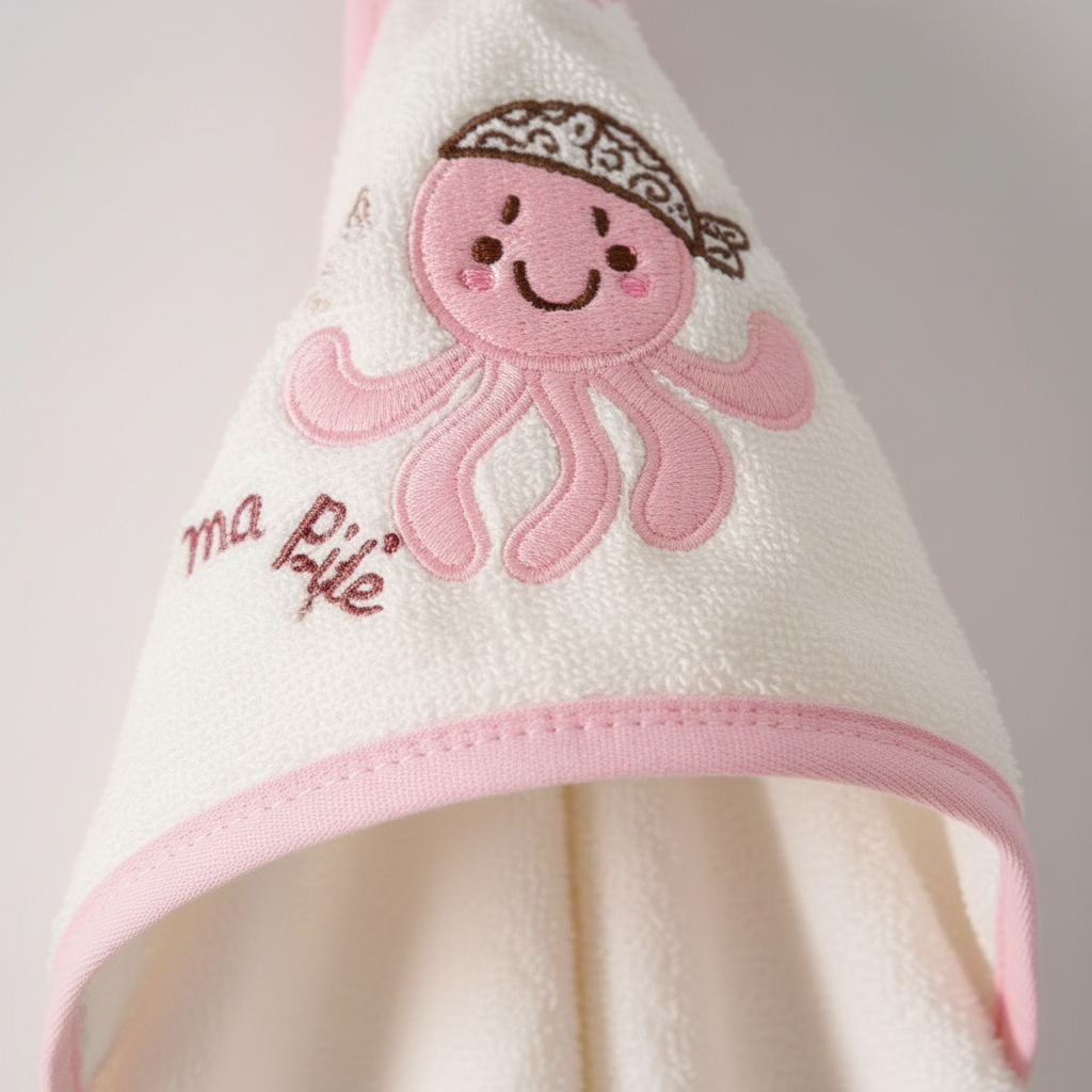 Bebekler için özel olarak tasarlanmış bu havlu, ahtapot desenli ve kapüşonludur. Yedi farklı renk seçeneği ile sunulan bu model, bebeğinizin tarzına uygun alternatifler sunar.