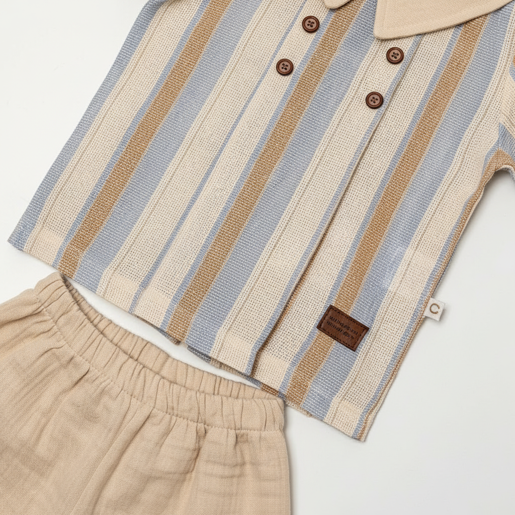 Erkek Bebek Çocuk Kısa Kollu Şortlu 2'li Takım (URU0009-BEJ-6)