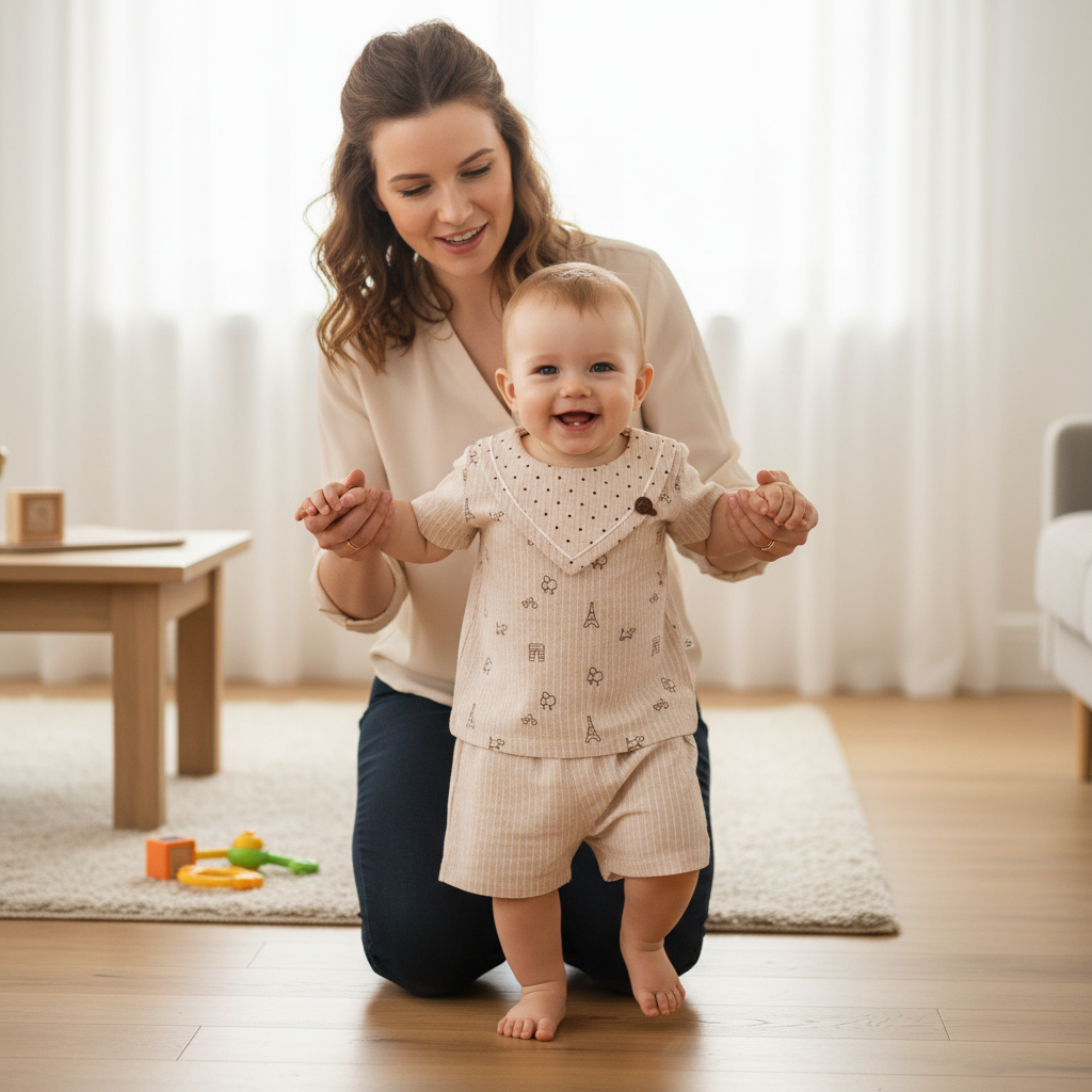 6 ila 24 ay arası erkek bebekler için özel olarak tasarlanmış bu takım; tişört ve şorttan oluşmaktadır. İki farklı renk seçeneği ile sunulan bu model, bebeğinizin tarzına uygun alternatifler sunar.