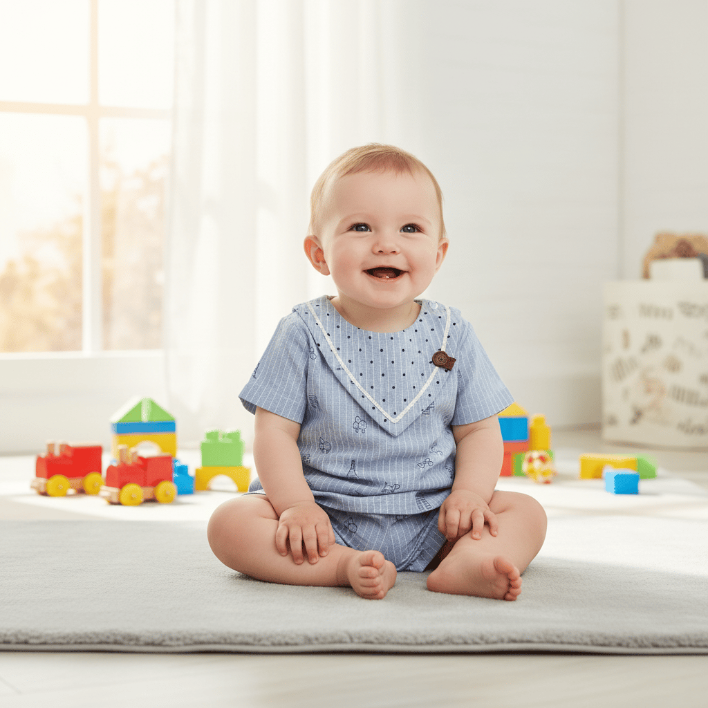 6 ila 24 ay arası erkek bebekler için özel olarak tasarlanmış bu takım; tişört ve şorttan oluşmaktadır.; İki farklı renk seçeneği ile sunulan bu model, bebeğinizin tarzına uygun alternatifler sunar.; Ürün, bebeğinizin hassas cildini korumak amacıyla sağlığa zararsız kumaş, boya, iplik ve aksesuarlar kullanılarak üretilmiştir.; Uzun ömürlü kullanım için yıkama talimatlarına dikkatle uymanız tavsiye edilir.