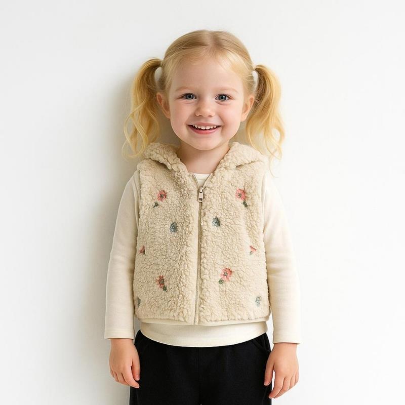 9–36 ay arası kız çocukları için tasarlanmış bu welsoft yelek, yumuşak dokusu ve çiçek nakışlı sevimli tasarımıyla kış–sonbahar dönemlerinde ideal.; Hafif ama sıcak tutan yapısı sayesinde okul, park veya günlük dışarı çıkışlarında rahatlıkla kullanılabilir.; Kolay giyilip çıkarılabilen yapısı ile ebeveynlere pratiklik sağlar.; Çiçek nakış detayı ve sade rengi, farklı kıyafetlerle kolayca kombin yapılmasına olanak tanır — hem gündelik hem şık kullanım için uygun bir dış giyim parçası.; Şık, konforlu ve her gün için ideal — küçük kızlar için güvenle tercih edebileceğiniz yelek!