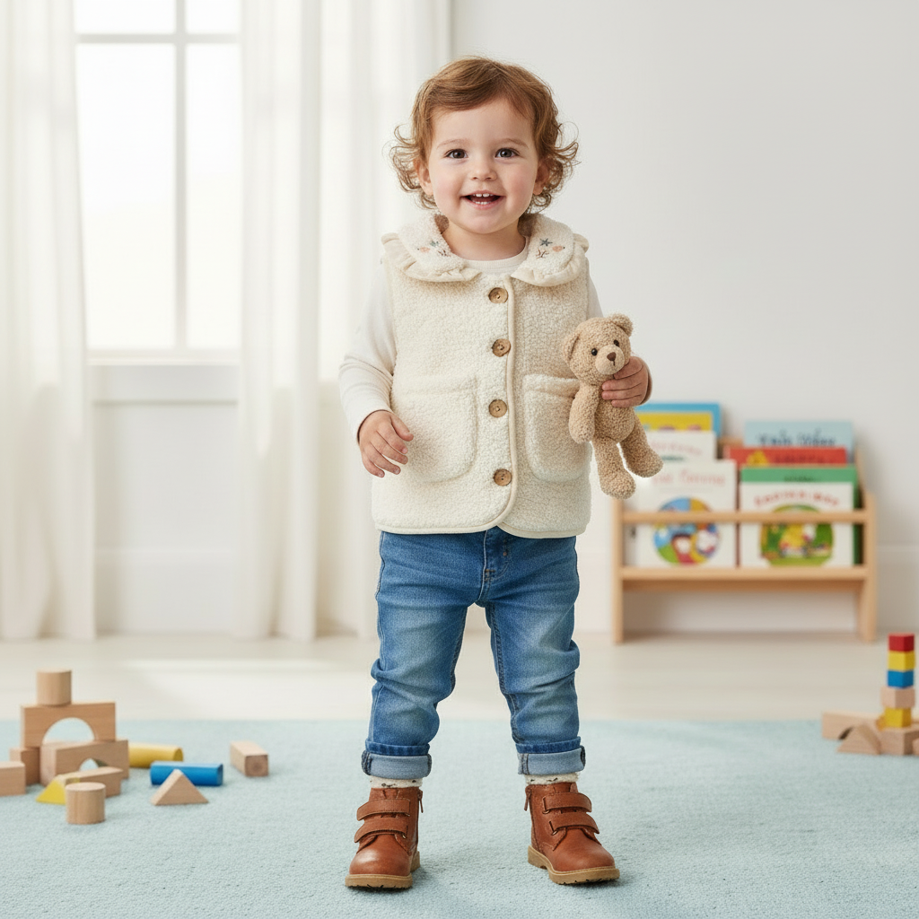Kız çocukları için tasarlanmış bu welsoft yelek, yumuşacık dokusuyla soğuk ve serin günlerde ekstra sıcaklık sağlar.; Hafif ve rahat kesimi sayesinde okul, park veya günlük dışarı çıkışlarında kolayca giyilip çıkarılabilir.; Unisex tarza yakın sade görünümüyle hem günlük kıyafetlerle hem de dış giyim üstü olarak kombinlenebilir.; Çocuğunuzun rahatını düşünen pratik ve kullanışlı bir dış giyim alternatifidir.; Sıcak, konforlu ve her gün için ideal — küçük kızlar için güvenle tercih edebileceğiniz yelek.