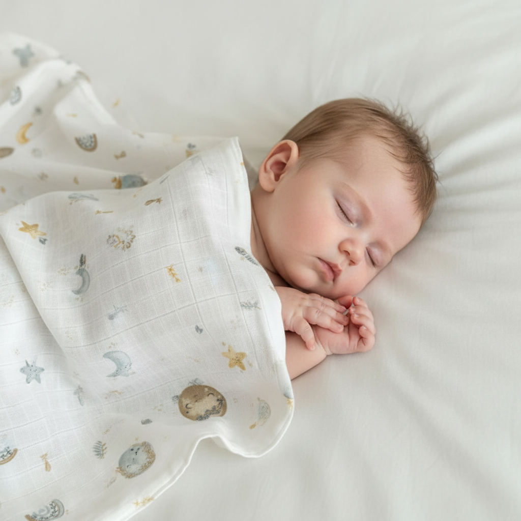Bebekler için özel olarak tasarlanmış bu battaniye, müslin kumaştan üretilmiştir.; Ürün, bebeğinizin hassas cildini korumak amacıyla sağlığa zararsız kumaş, boya, iplik ve aksesuarlar kullanılarak üretilmiştir.; Uzun ömürlü kullanım için yıkama talimatlarına dikkatle uymanız tavsiye edilir.